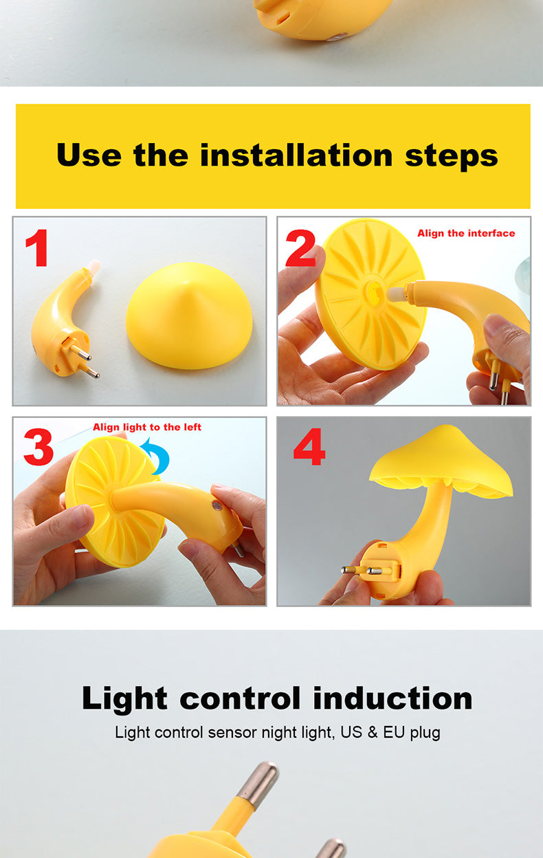Led night light mushroom wall socket lamp eu us plug warm white light control sensor bedroom light home decoration